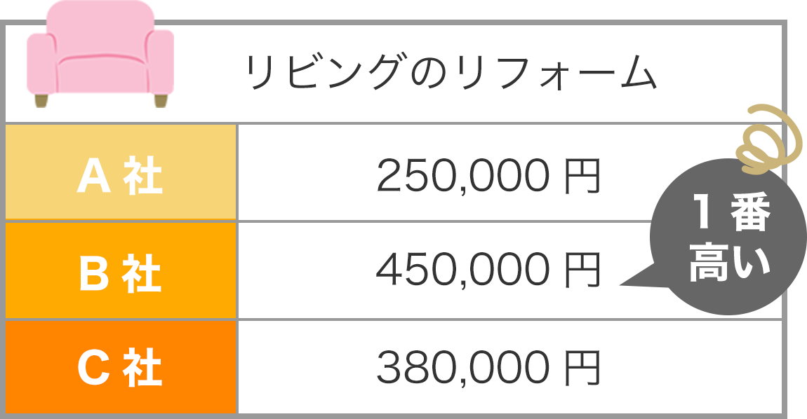 同じ会社でも、何のリフォームを行うかによって費用が全然違います。