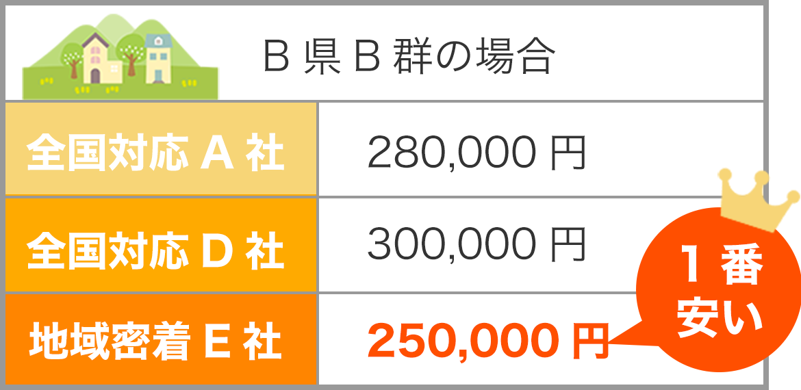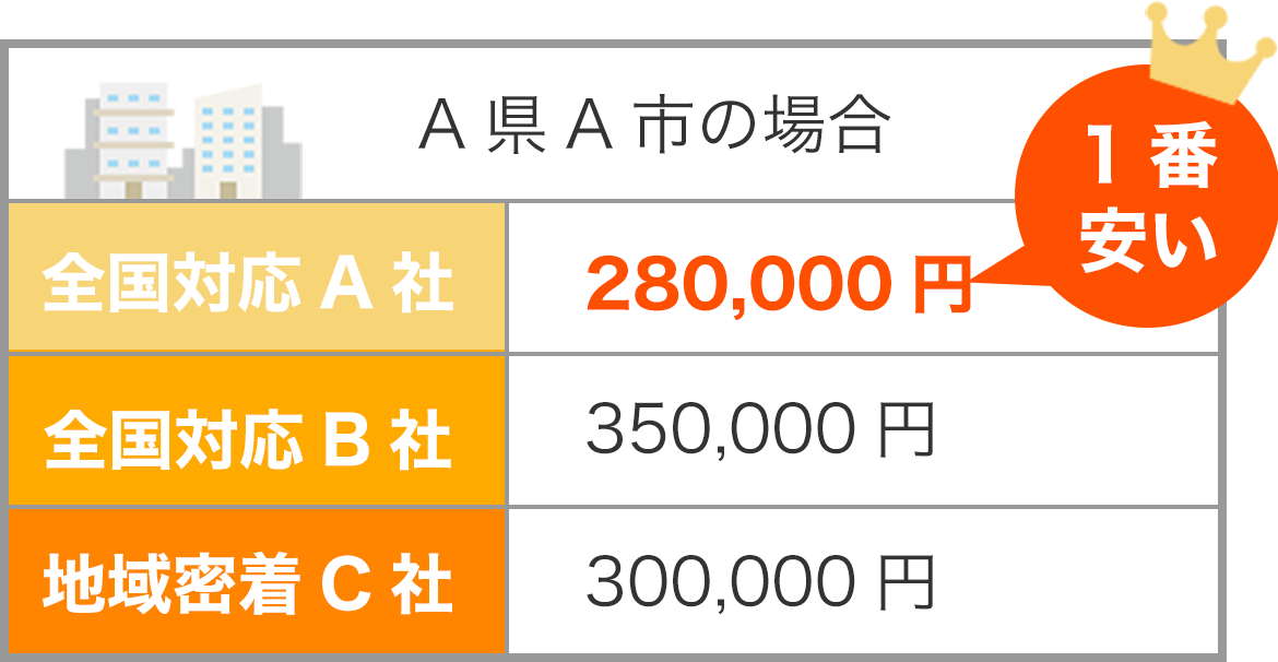 中には地域密着で、全国対応の大手業者より費用が安いケースも!